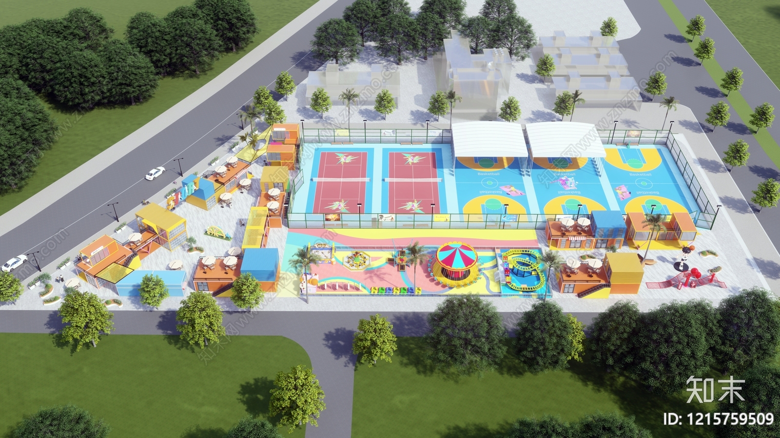 - 现代潮流运动风鸟瞰规划 篮球公园 运动主题公园 主题公园