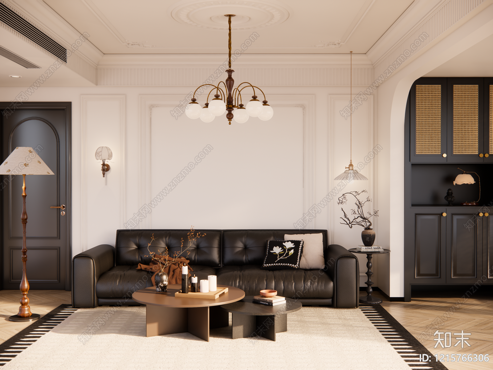 中古风家居客厅 法式中古客厅组合 现代中古沙发组合 法式中古边几吊灯 现代中古藤编边柜 法式中古落地灯