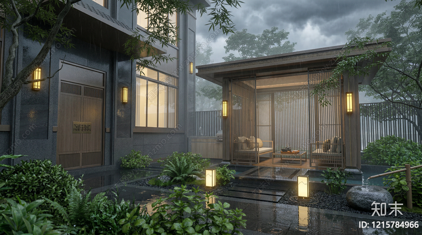 - 新中式别墅庭院 庭院 别墅庭院