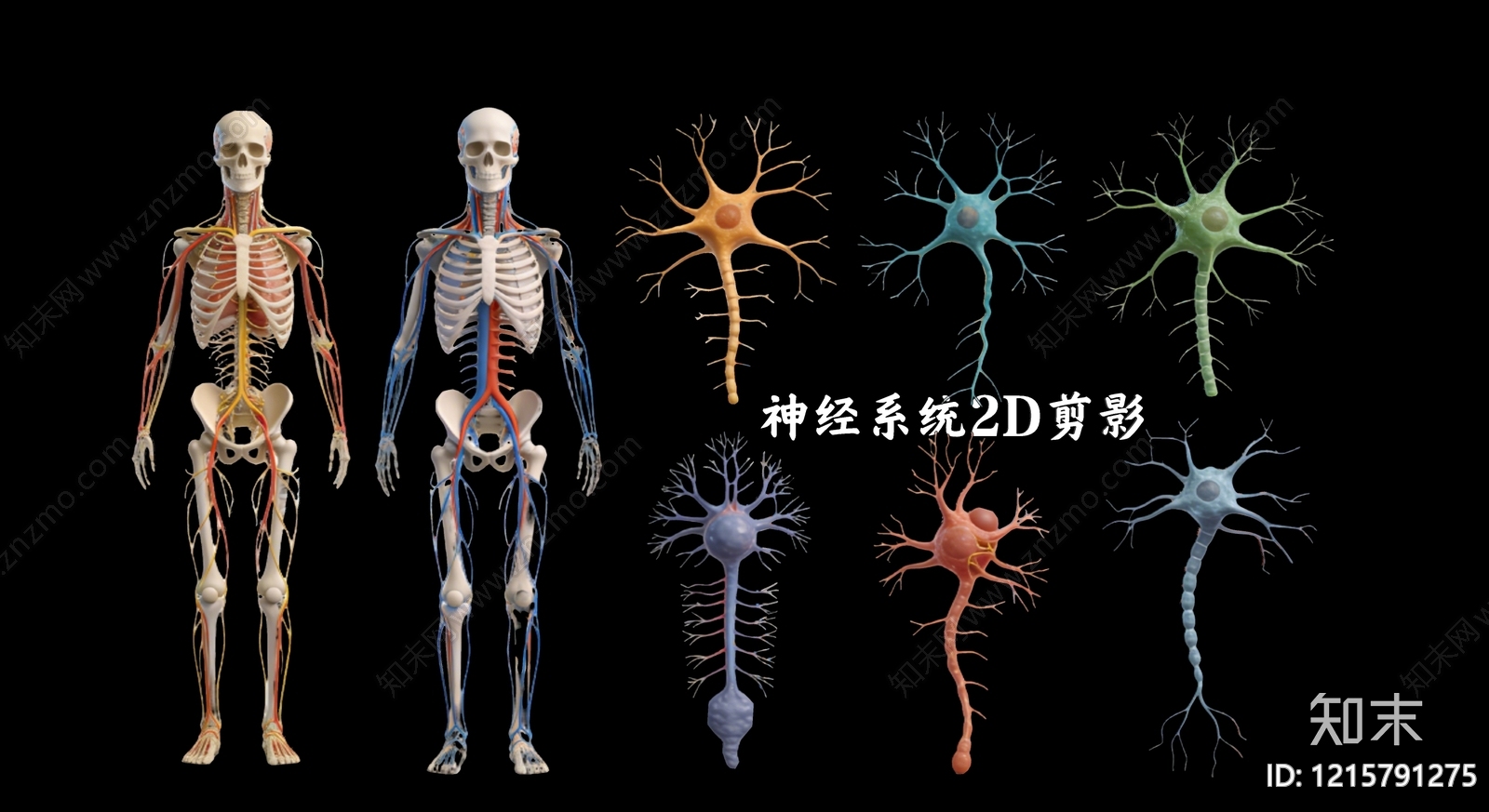 - 医学可视化风格展板 神经系统2D剪影