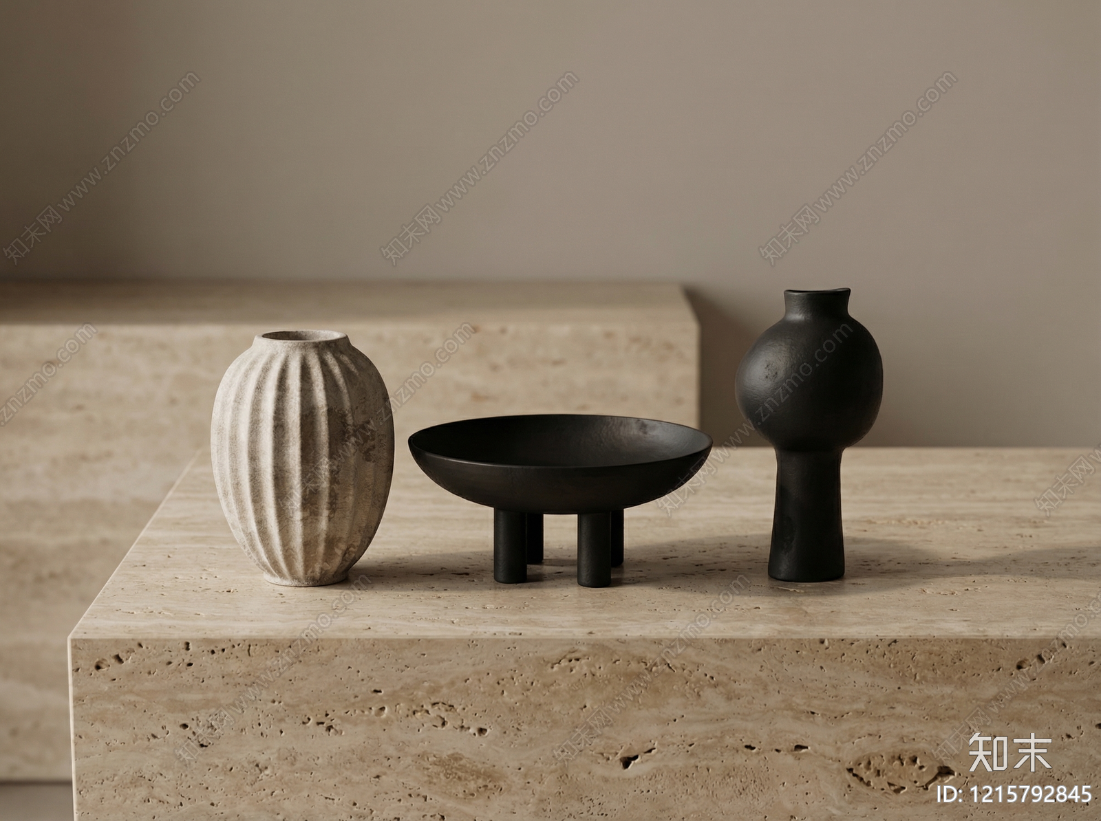 - 极简主义摆件组合 极简 凳子 摆件 现代 雕塑