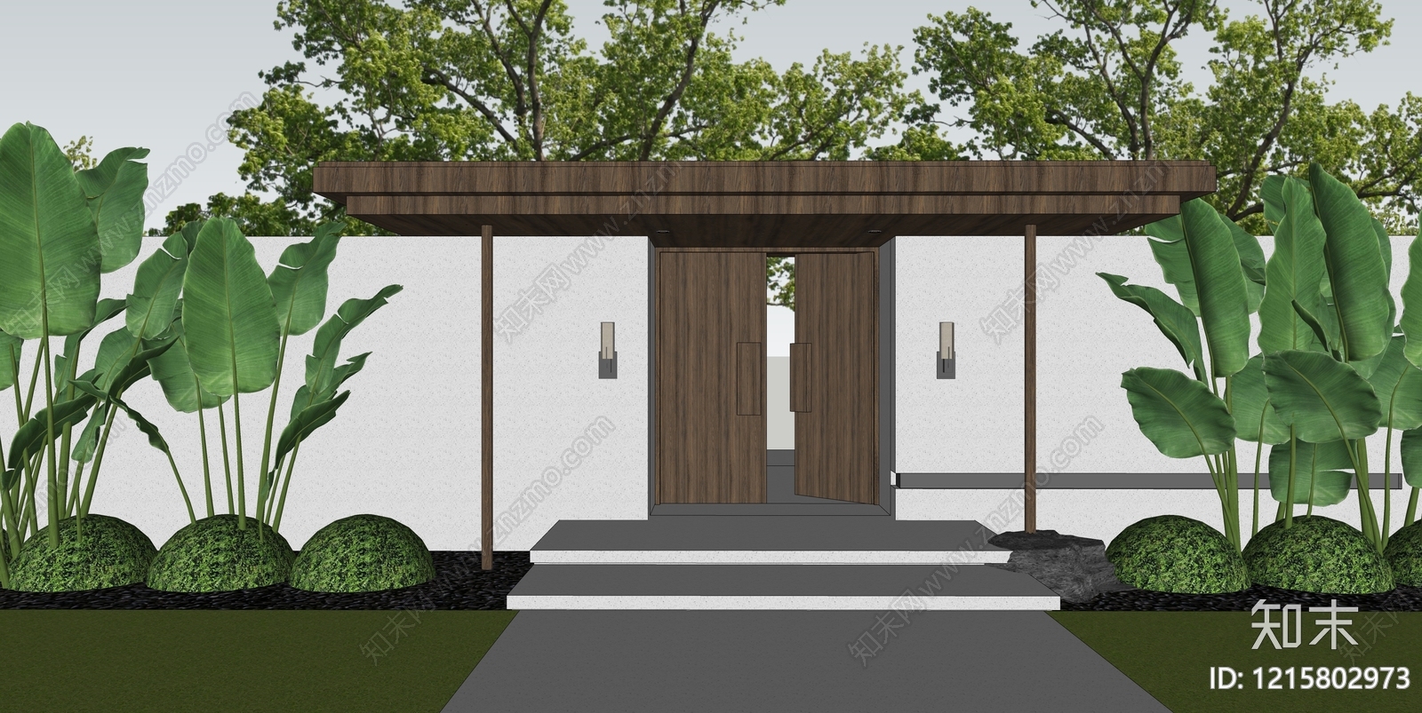 - 新中式入口大门 庭院大门 现代大门 景观大门