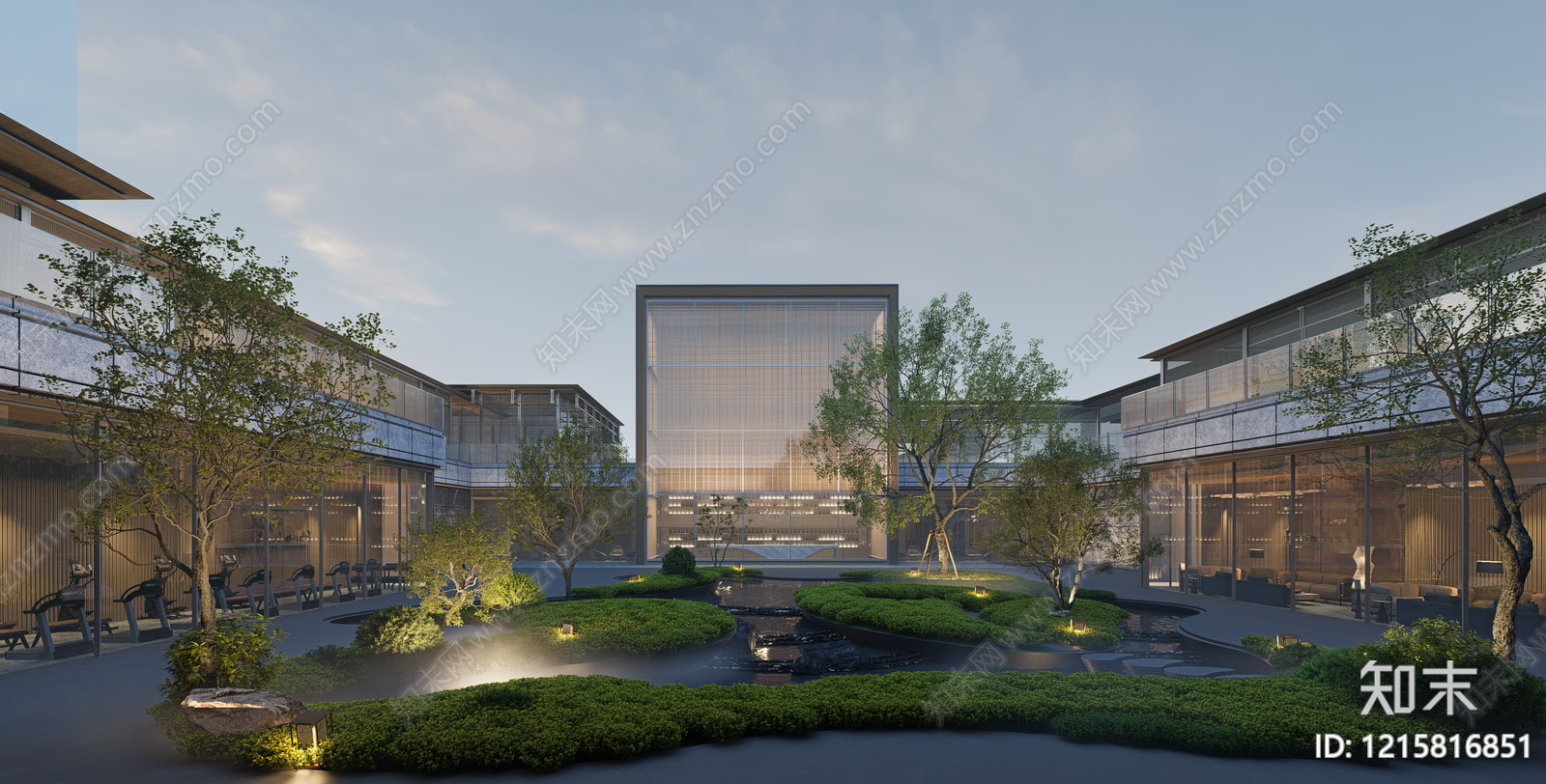 - 新中式小区景观 示范区景观 下沉庭院 会所