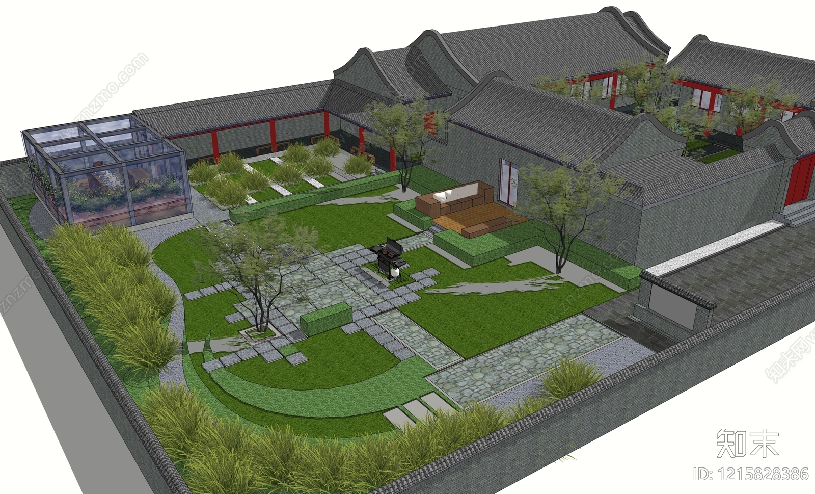 - 新中式景观别墅庭院 别墅庭院 新中式别墅景观 别墅菜园