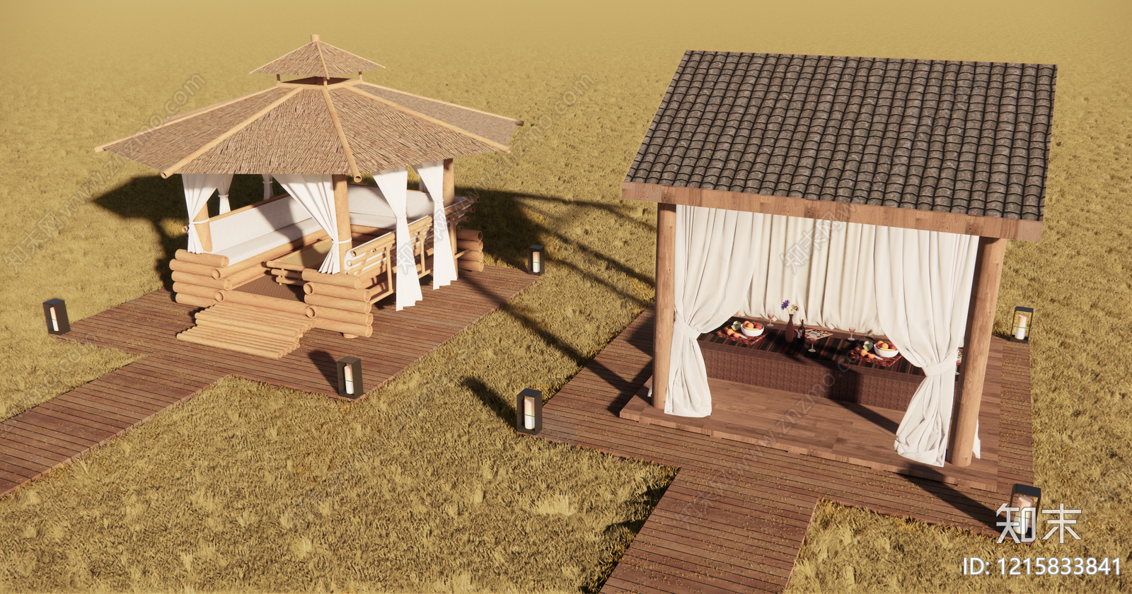 新中式农业景观 稻田景观休憩设施 田园观景木构廊架 乡野自然疗愈空间 农文旅休憩平台 麦田景观休憩亭廊