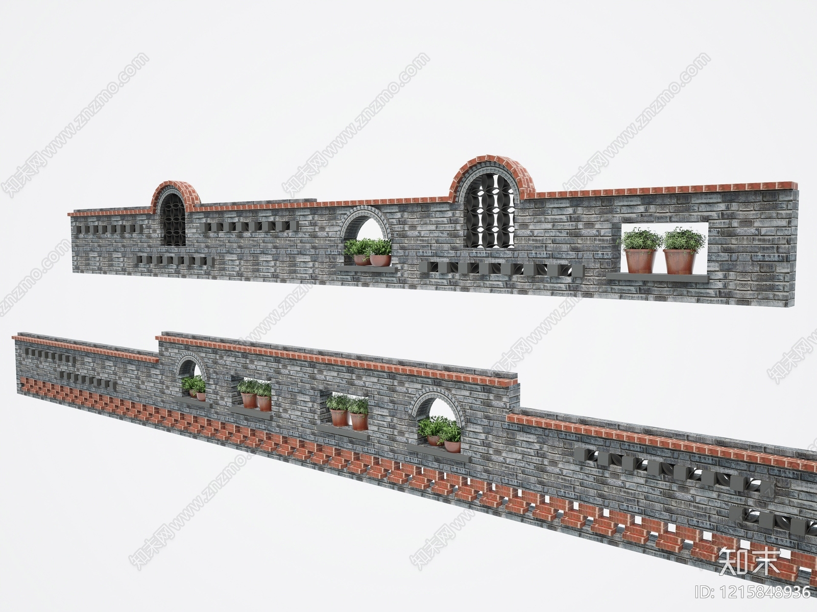 - 新中式景墙 乡村砖块矮墙 乡村镂空文化矮墙