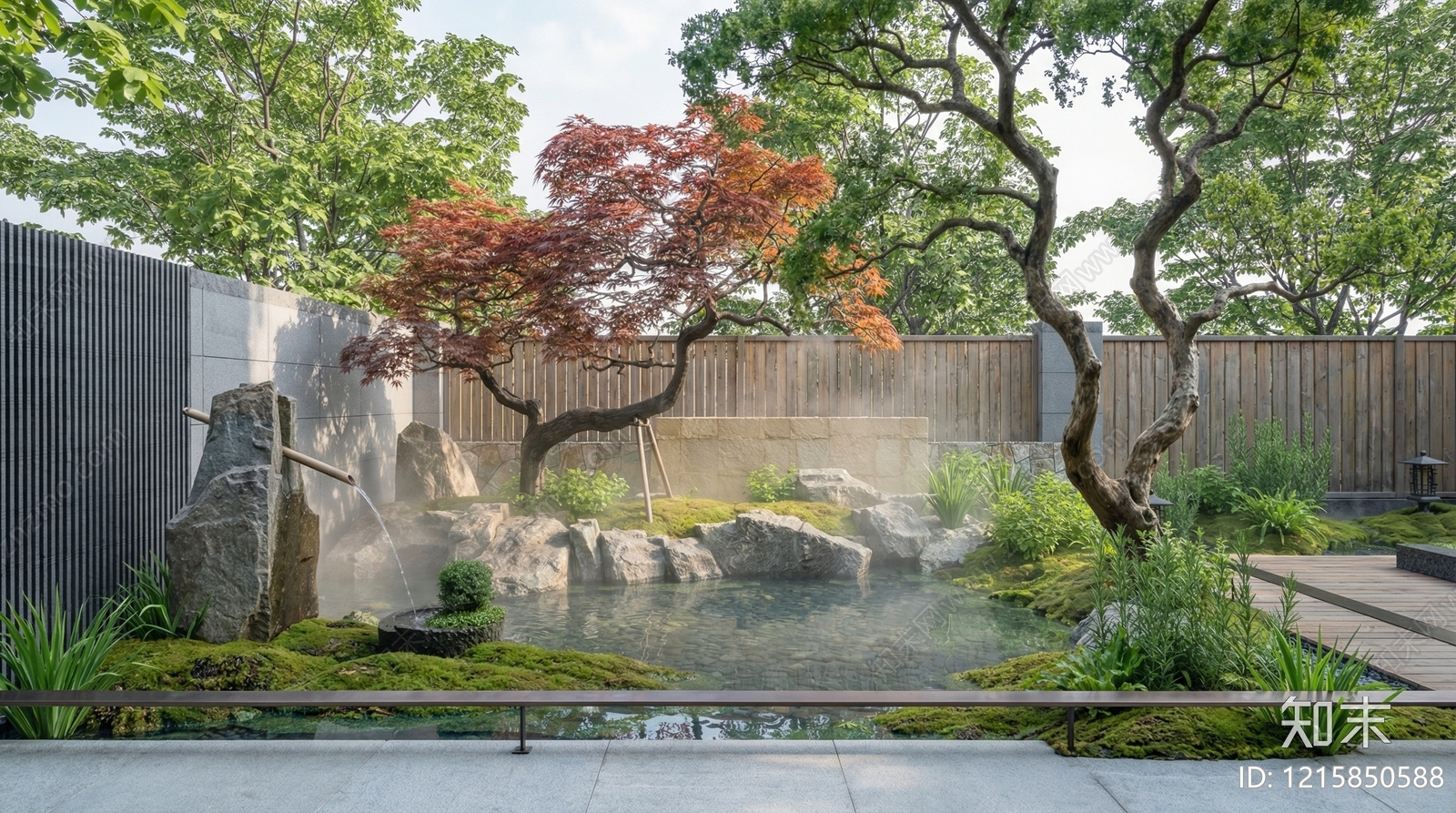 - 新中式景观别墅庭院 中式庭院花园 园林景观 枯山水