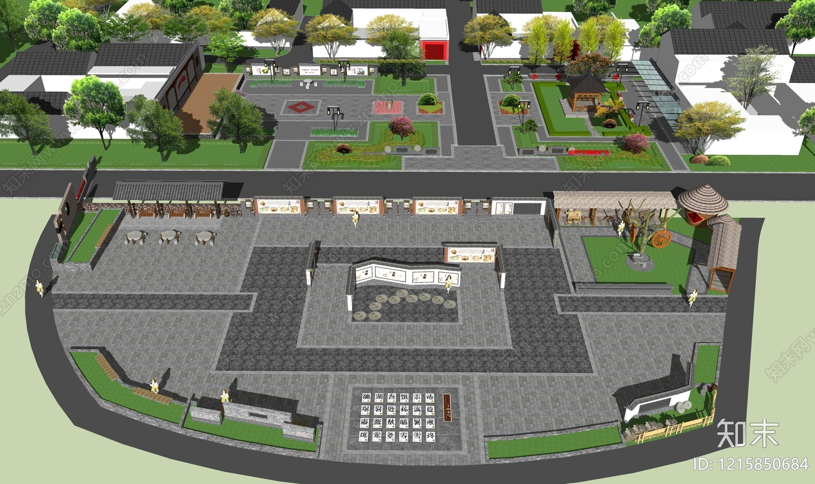 - 新中式广场景观 连廊乡村舞台 乡村宣传栏 乡村广场 乡村建筑