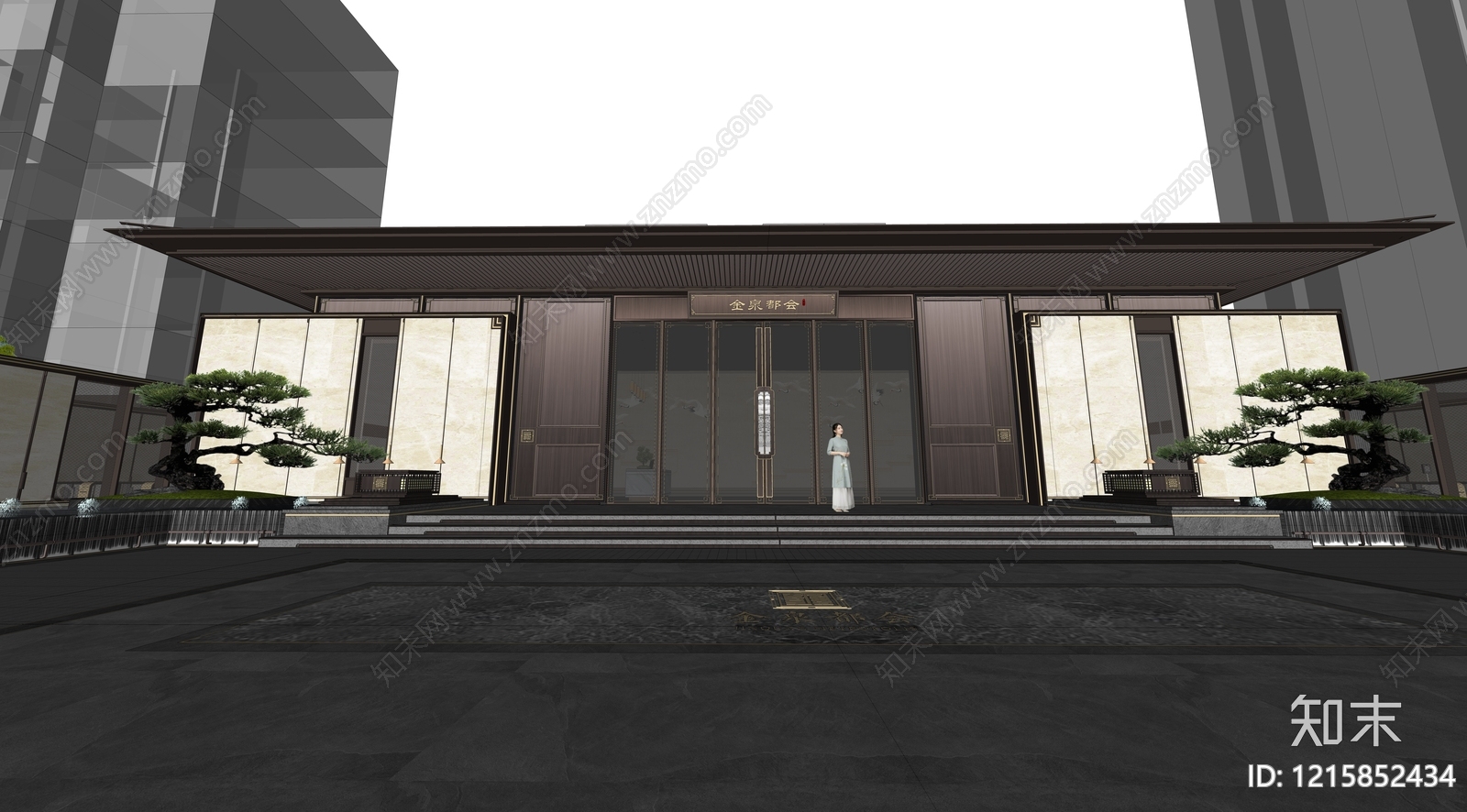 - 新中式入口大门 住宅入口 围墙 小高层住宅建筑