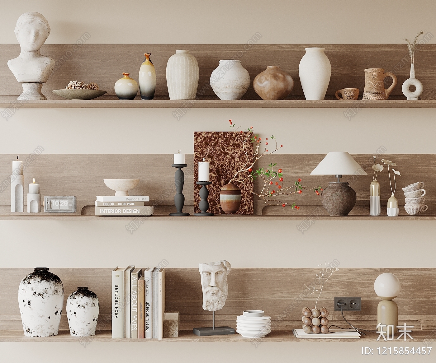 - 侘寂摆件组合 摆件 装饰摆件 摆件 咖啡店装饰摆件 厨房货架层板