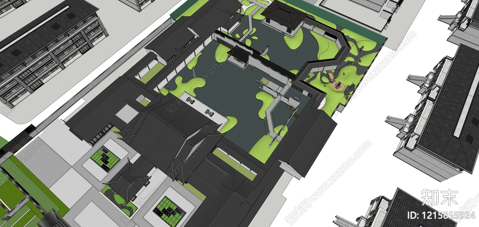 新中式古建筑 新中式住宅景观 新中式水景 新中式回廊 中式地形景观