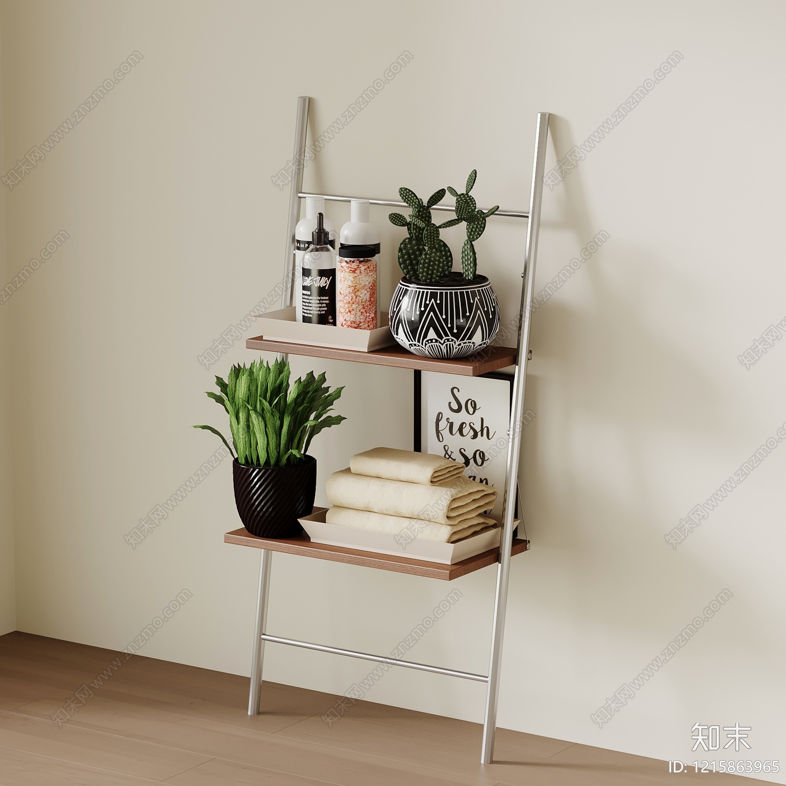 奶油风书架 现代中古风置物架 花架 装饰架