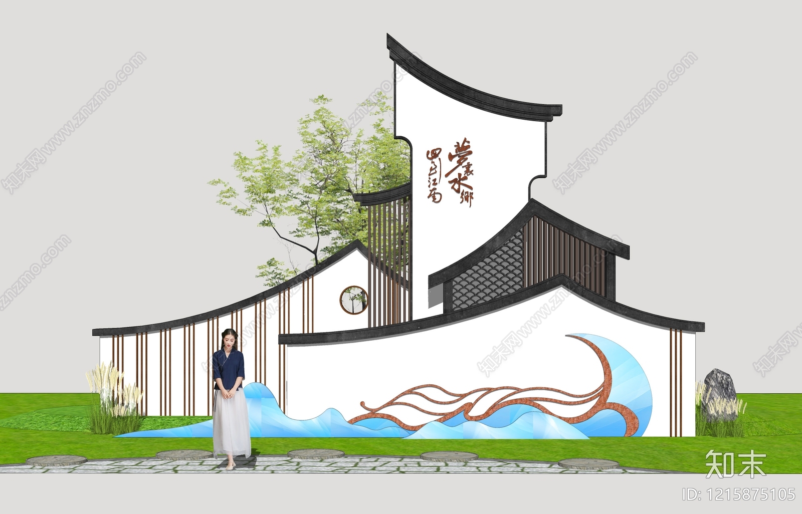 - 新中式景墙 庭院景墙小品
