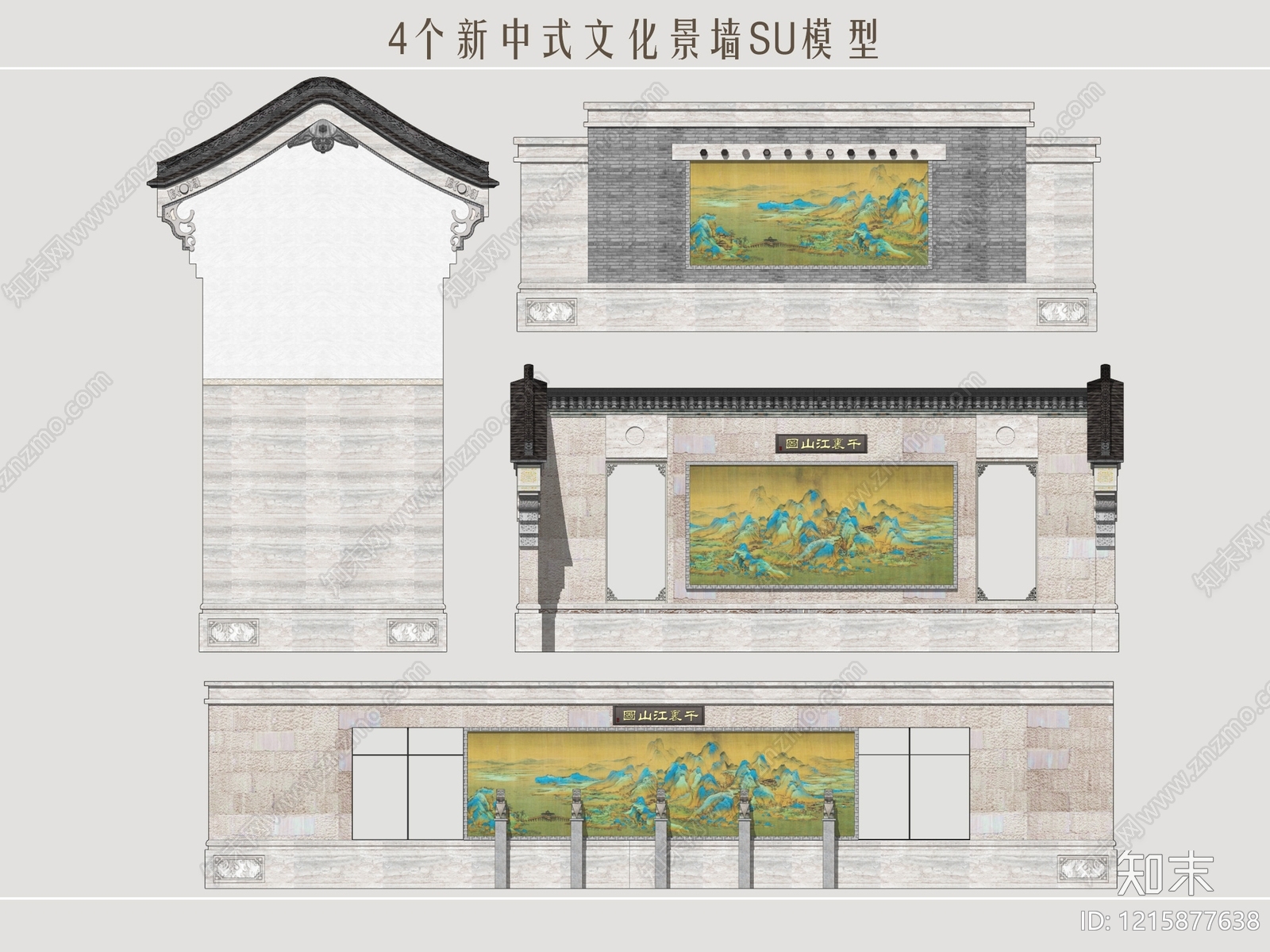 - 新中式景墙 国画景墙 青绿山水景墙 影壁墙 文化景墙