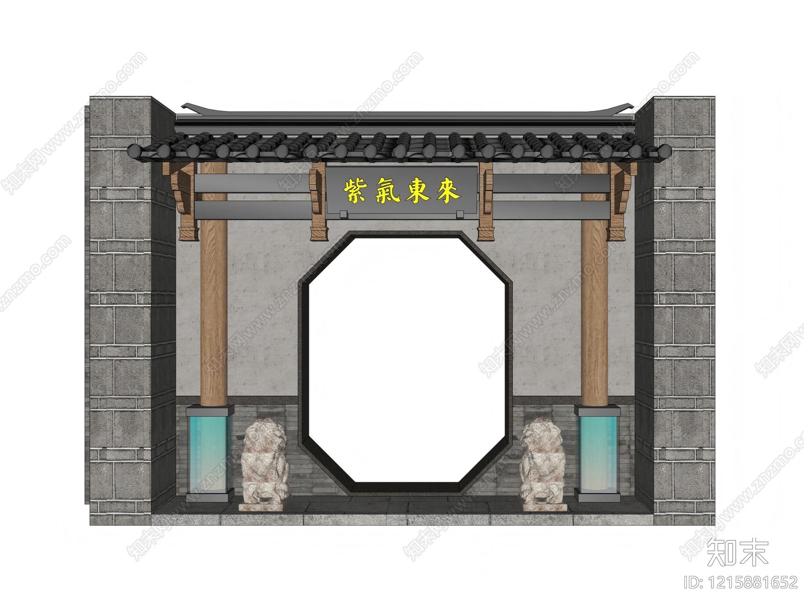 - 新中式入口大门 中式合院门头 新中式围墙 入口大门