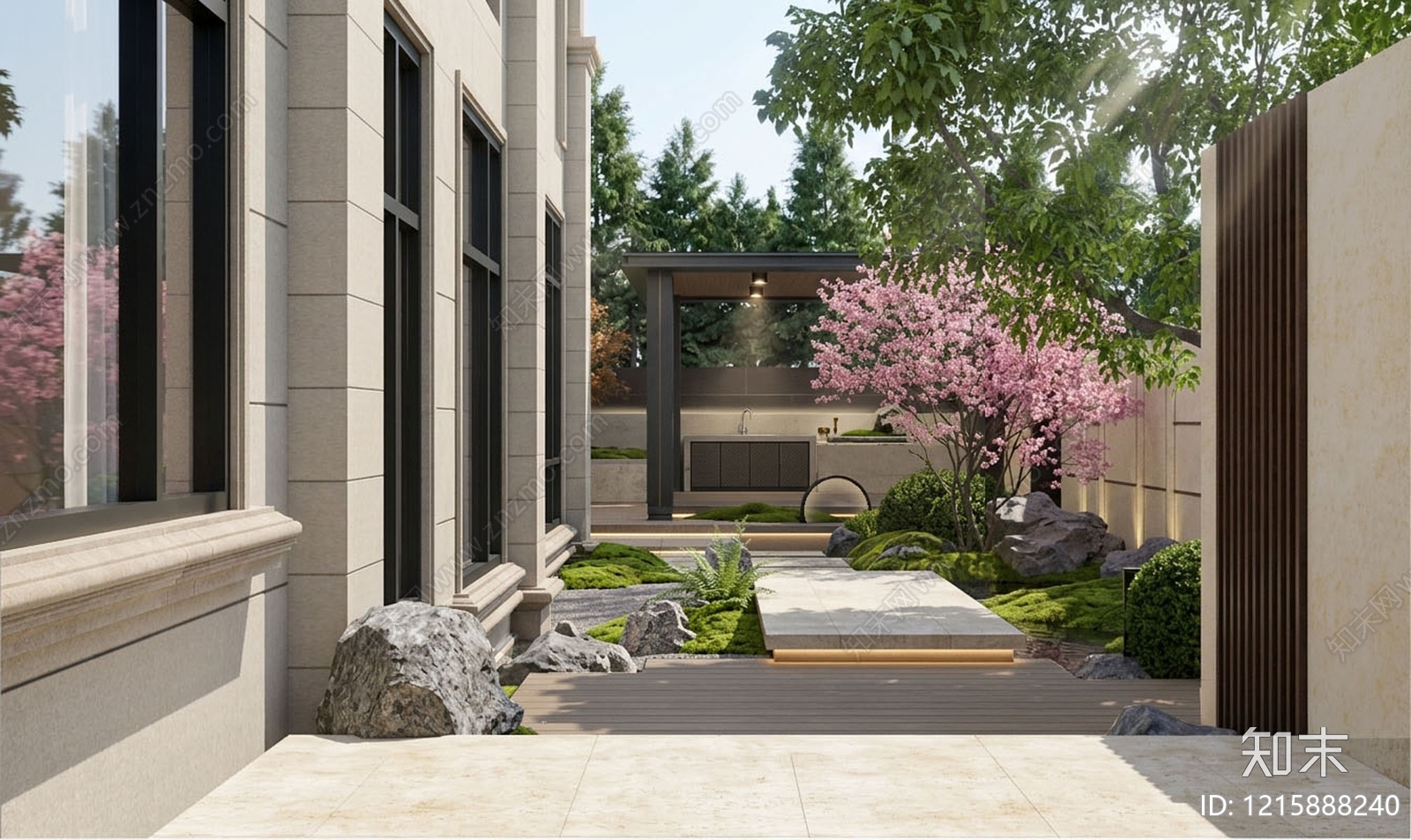 新中式景观别墅庭院 现代庭院 禅意庭院 自然风庭院 别墅 庭院景观