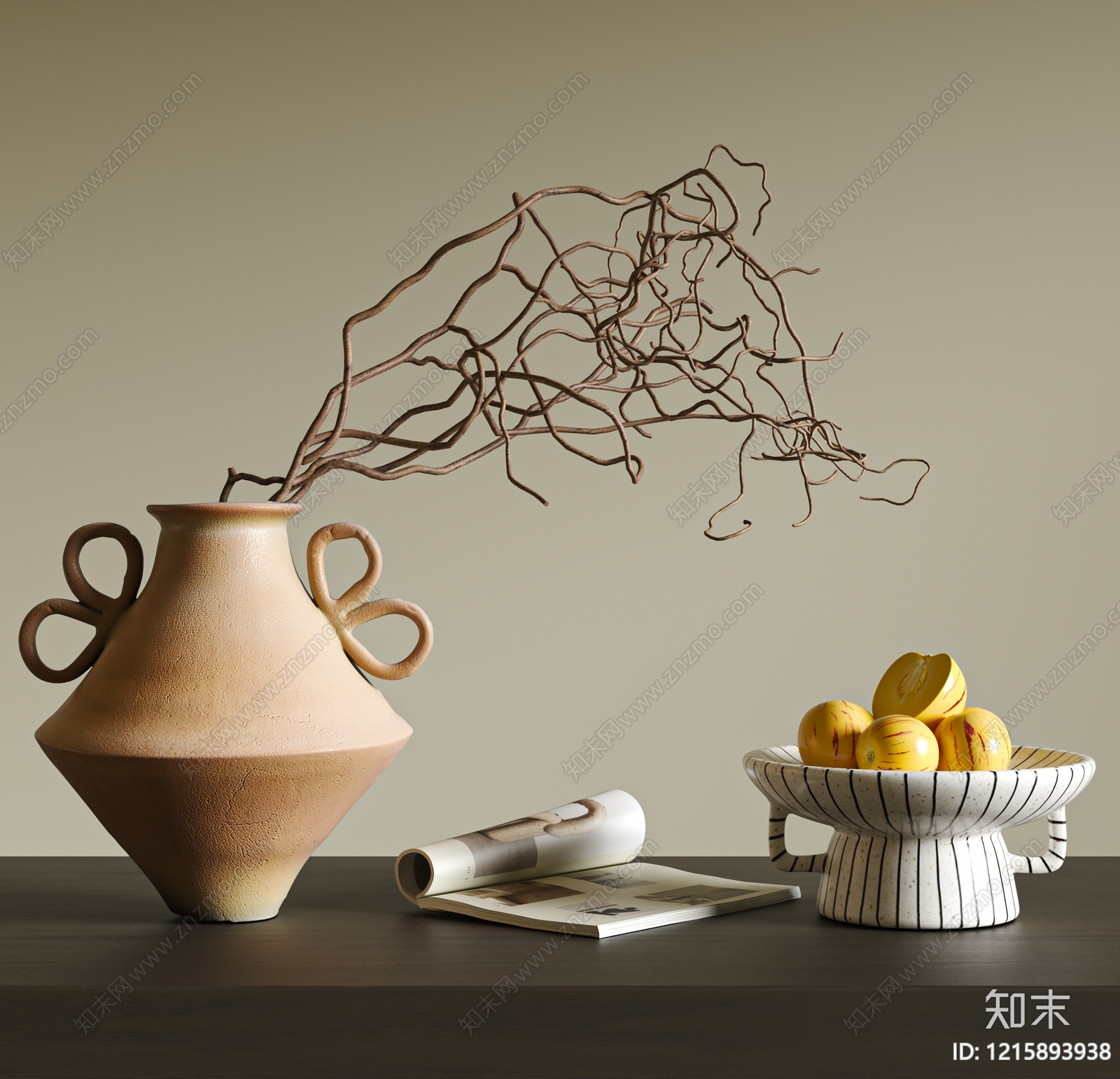侘寂摆件组合 现代侘寂摆件 干支花瓶 陶罐 果盘 水果摆件