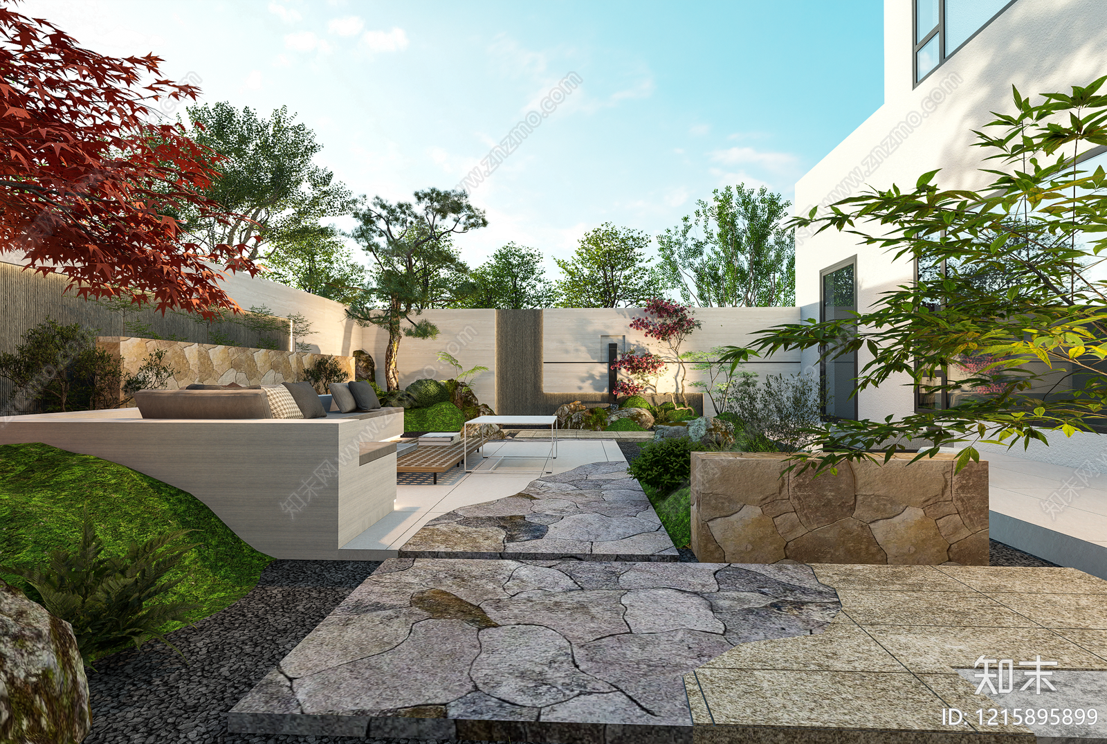 - 日式禅意别墅庭院 中式禅意庭院 庭院景墙 庭院水景 现代自然庭院 自然花园