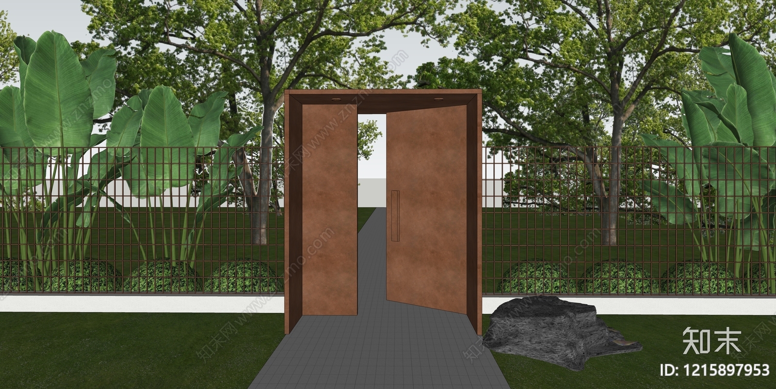 - 现代极简庭院小品 庭院大门 现代大门 景观大门
