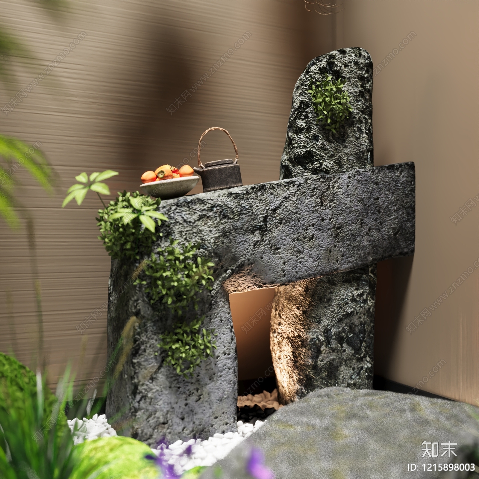 - 新中式景观室内景观 室内景观 室内假山 中庭景观 办公室假山