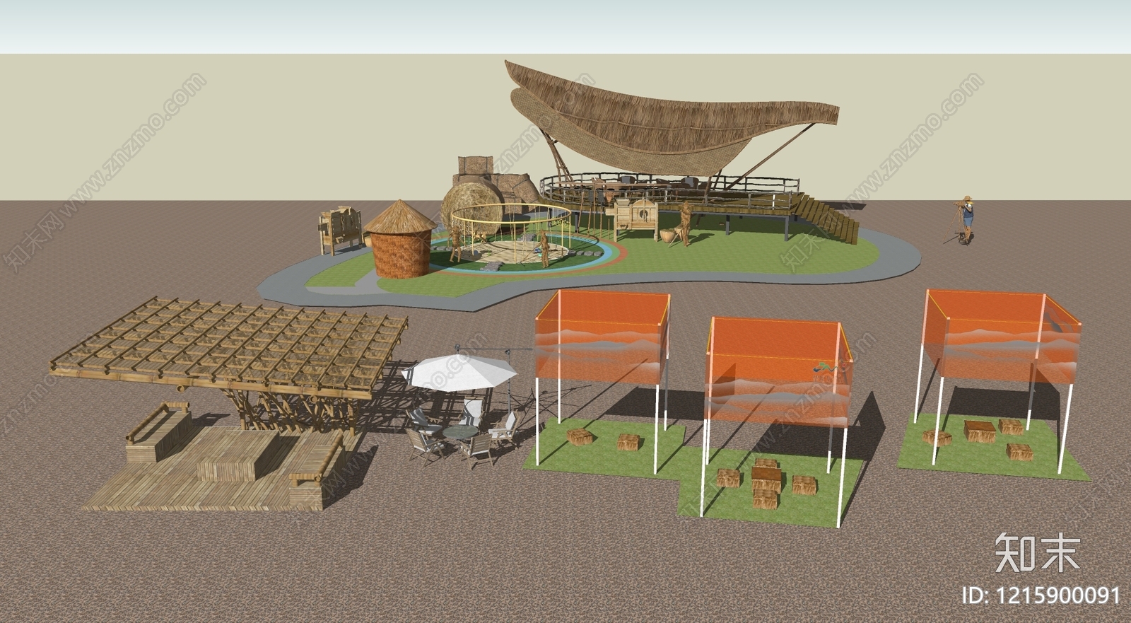 - 现代亭子 茅草亭 茅草廊架构筑物 茅草休息廊