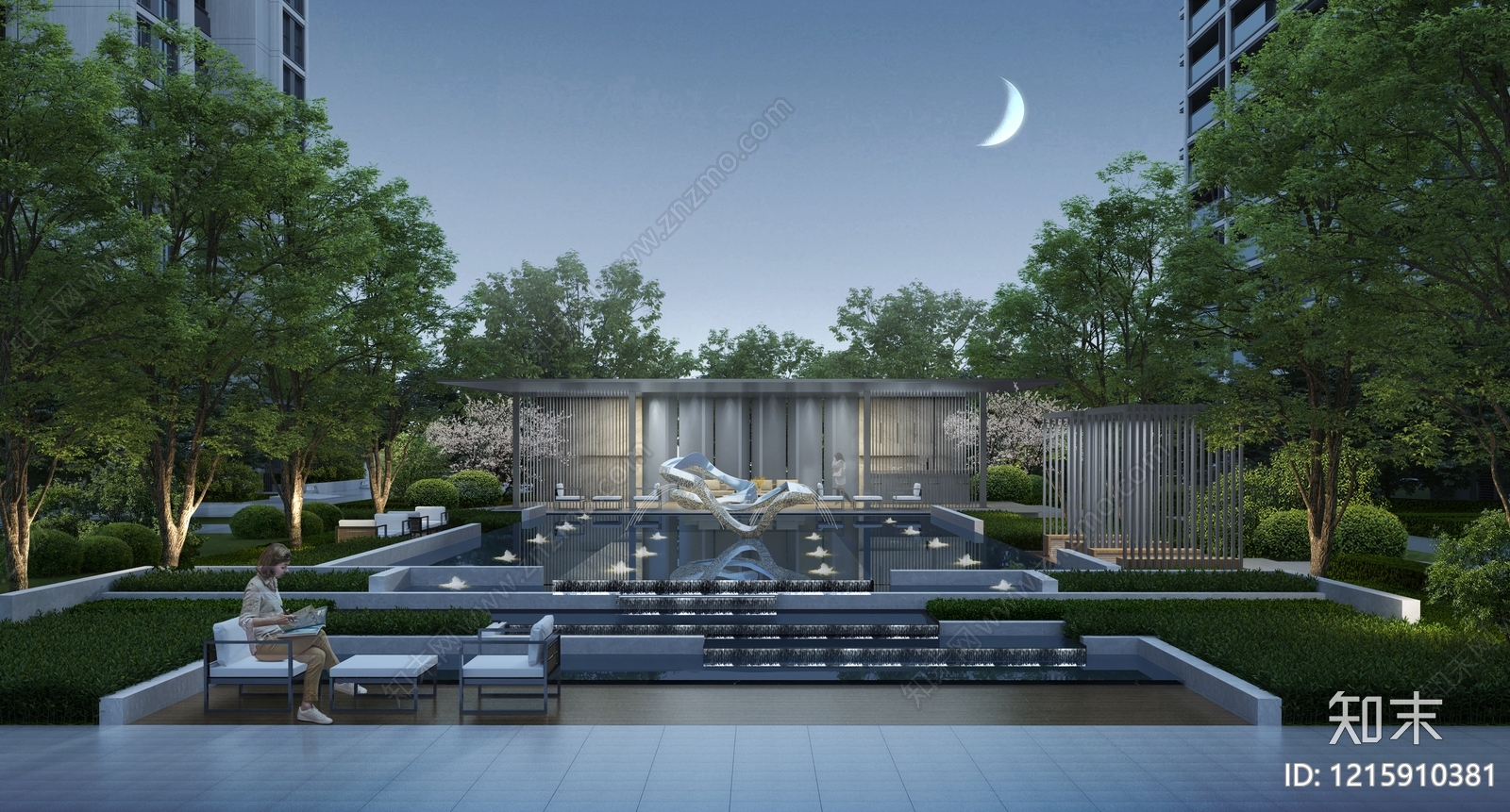 - 现代简约小区景观 住宅景观 住宅雕塑景观 住宅水景