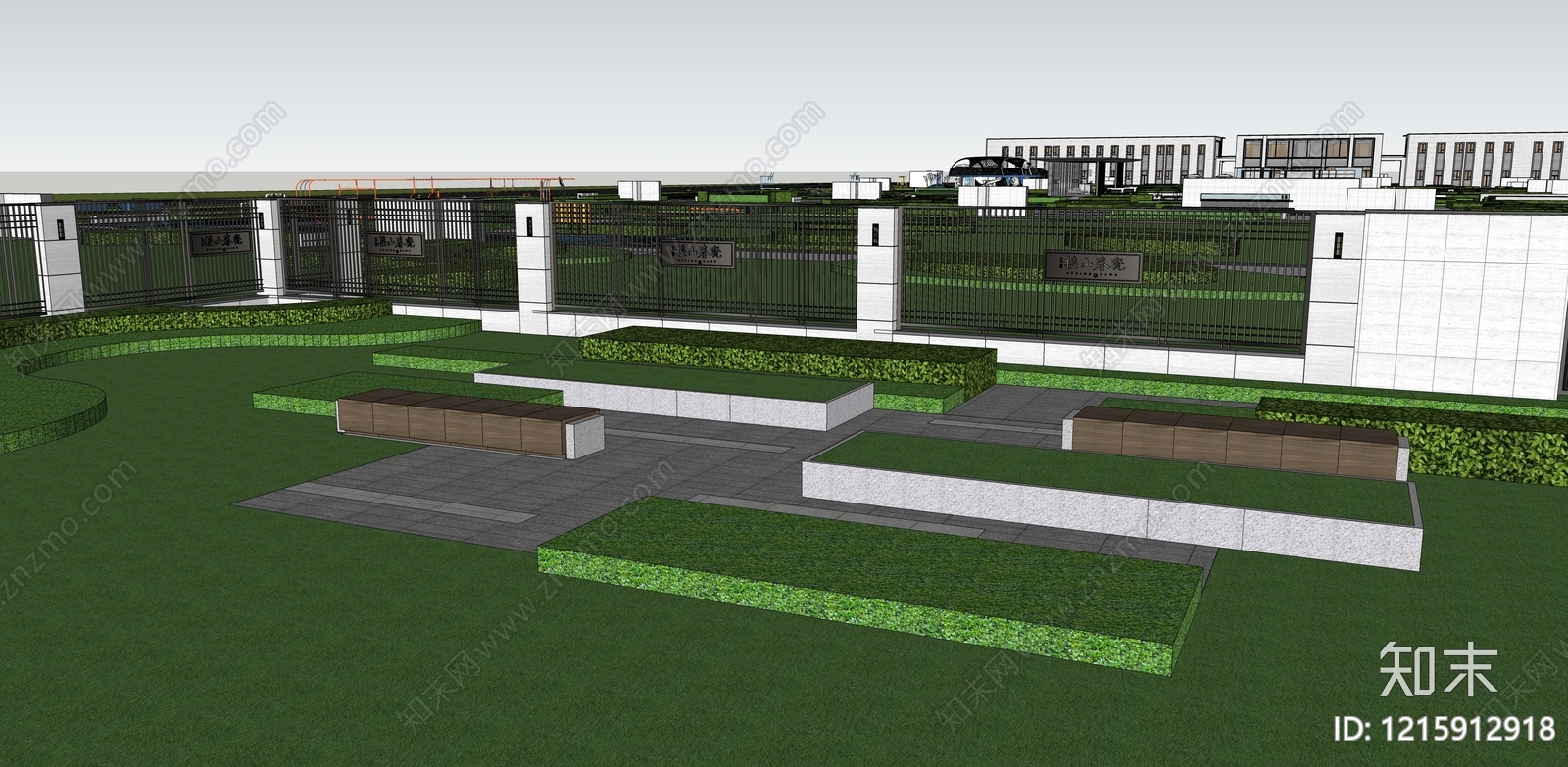 - 现代简约小区景观 住宅围墙景观 住宅休闲区景观