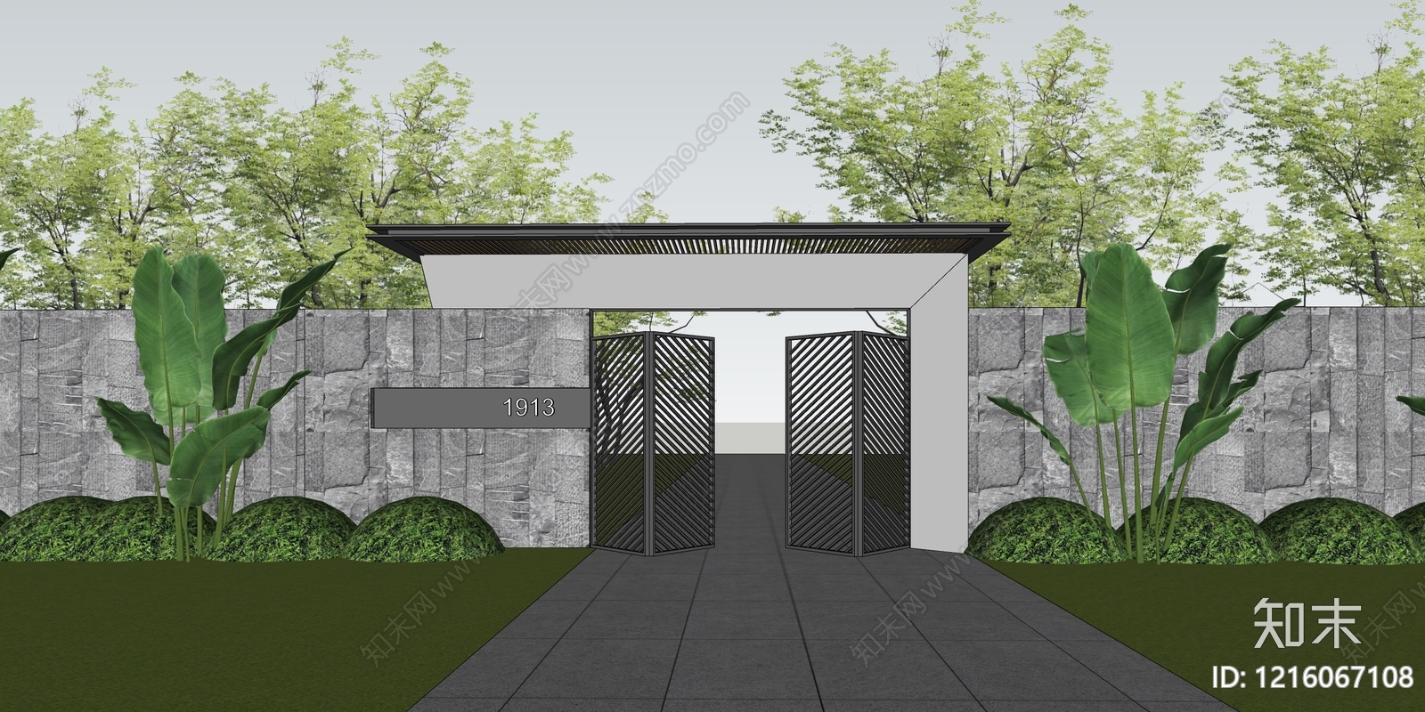 - 现代简约入口大门 现代大门 庭院大门 景观大门