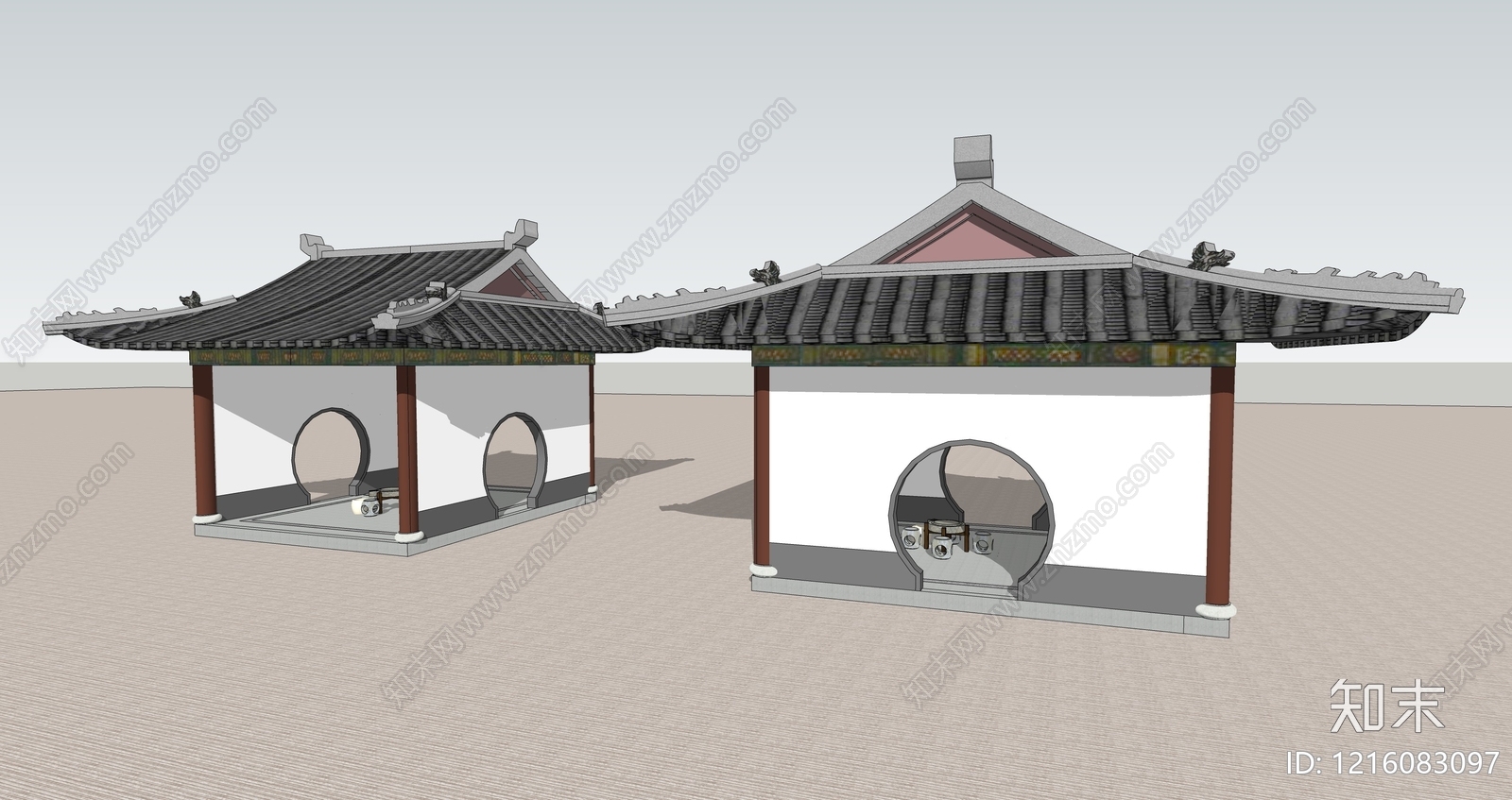 - 新中式古建筑 大门 门头 徽派大门 别墅大门 仿古建筑