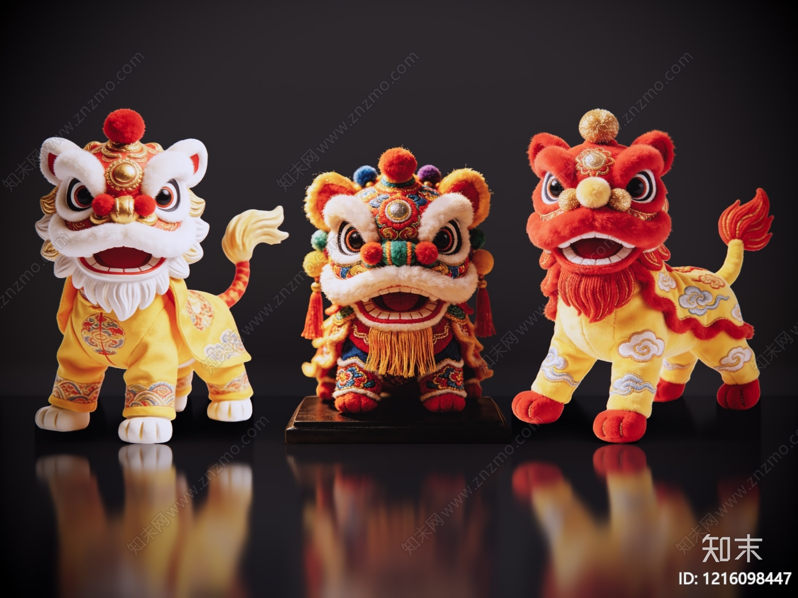 - 新中式春节美陈 2D醒狮手办 醒狮公仔 舞狮活动 民俗活动 非物质文化遗产