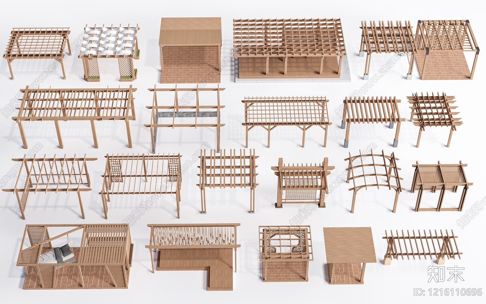 - 现代简约廊架 现代廊架 木花架 木构架 葡萄架 亭子 景观廊架
