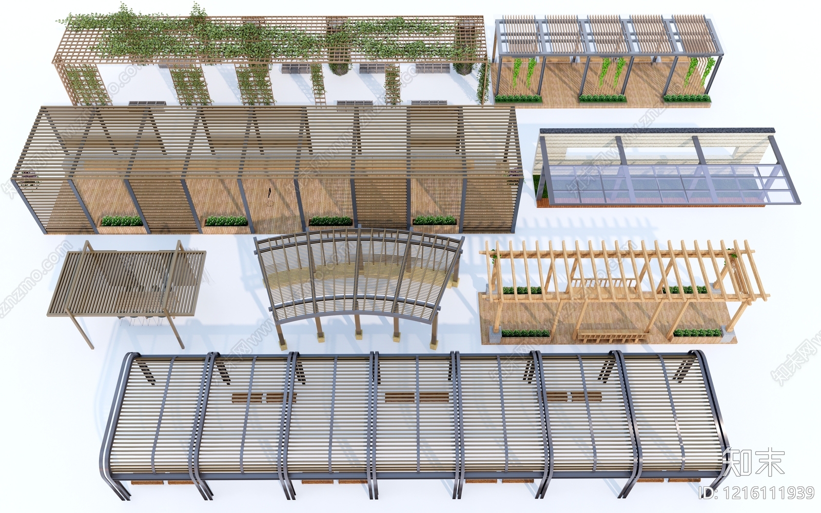- 现代简约廊架 现代廊架 木花架 木构架 葡萄架 亭子 景观廊架