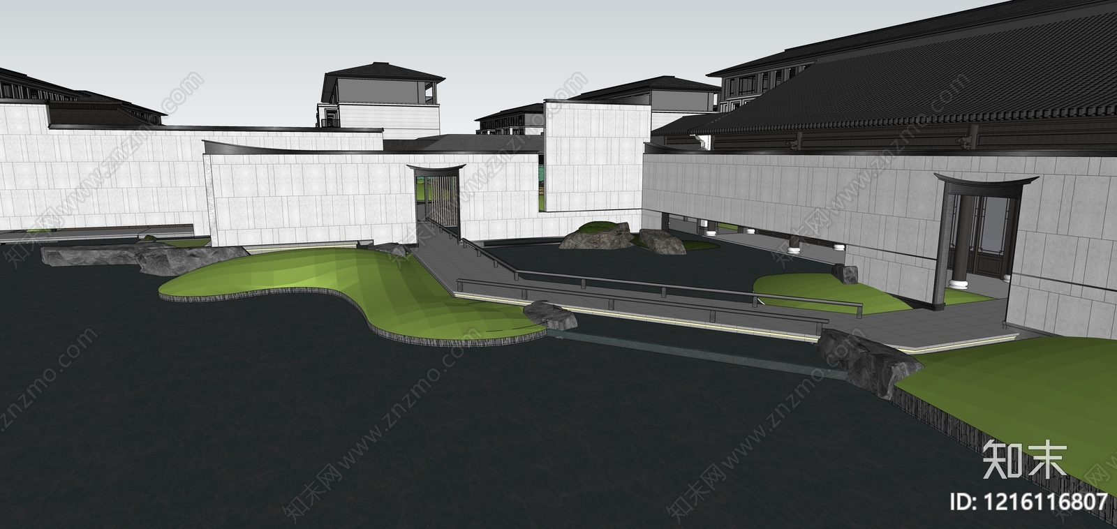 - 新中式小区景观 中式住宅景观 中式住宅水景景观 中式小桥水景景观