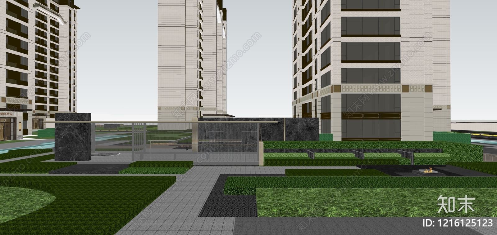 - 现代主义小区景观 住宅景观 小区景观 住宅入口景观