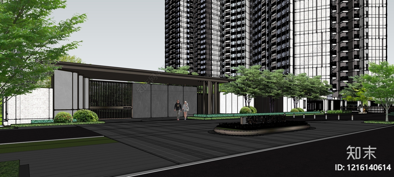 - 现代主义小区景观 住宅景观 小区景观 住宅入口景观