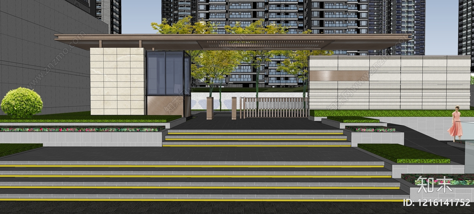 - 现代主义小区景观 住宅景观 小区景观 住宅入口景观