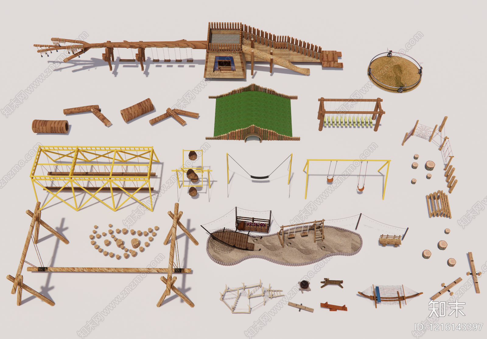 - 原木风儿童游乐空间 农文旅儿童设施 乡村旅游游乐设施 攀爬平衡拓展设施 秋千绳网钻爬设施 原木自然游乐装置