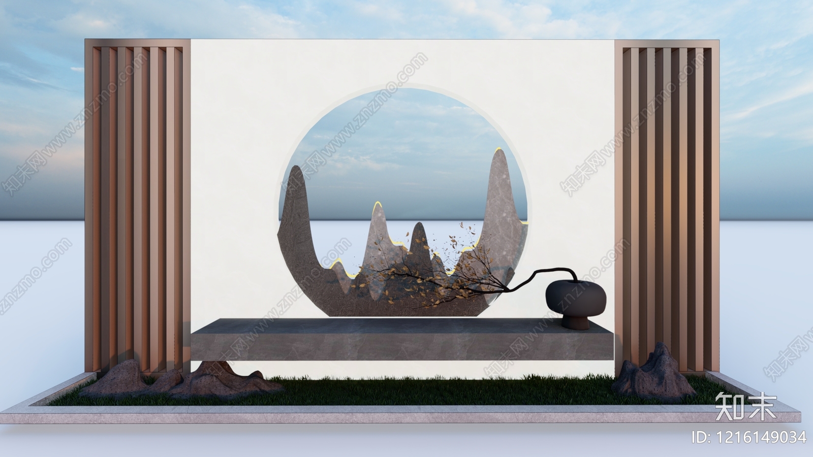 - 新中式景墙 石材景墙绿植门口