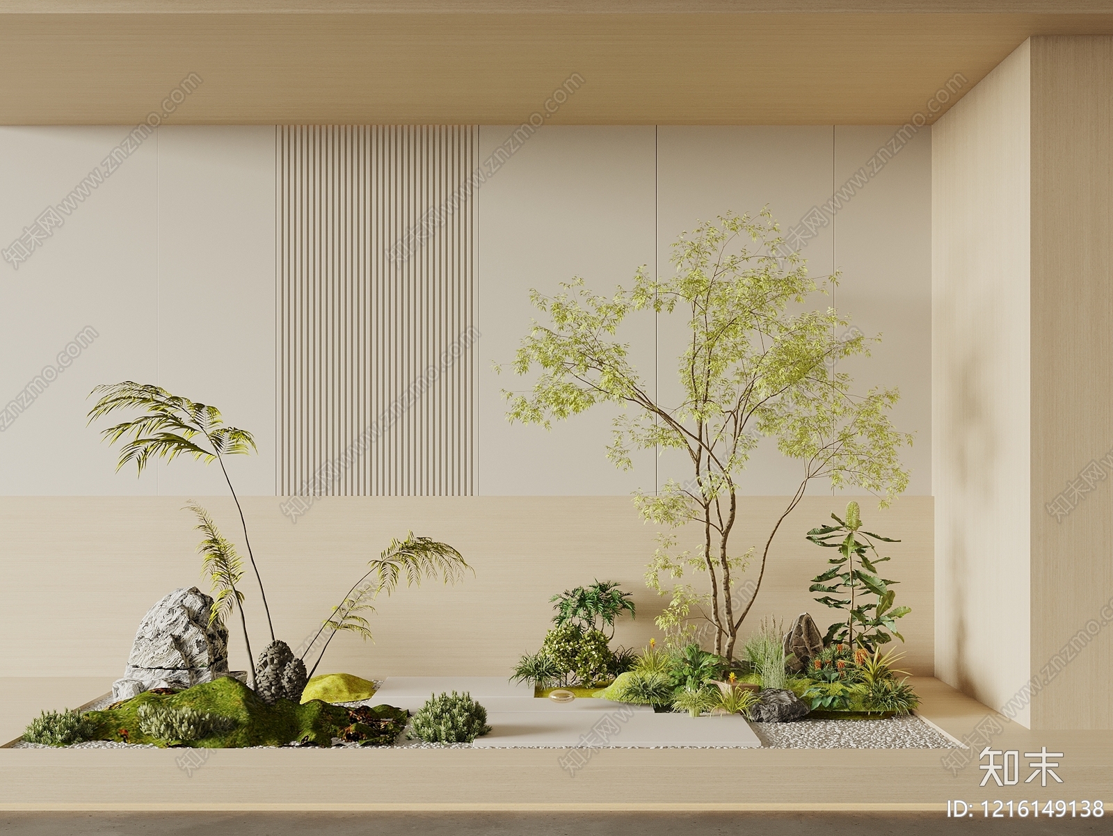 - 日式禅意室内景观 现代植物景观造景 景观小品 住宅景观 庭院小品 景观树植物堆
