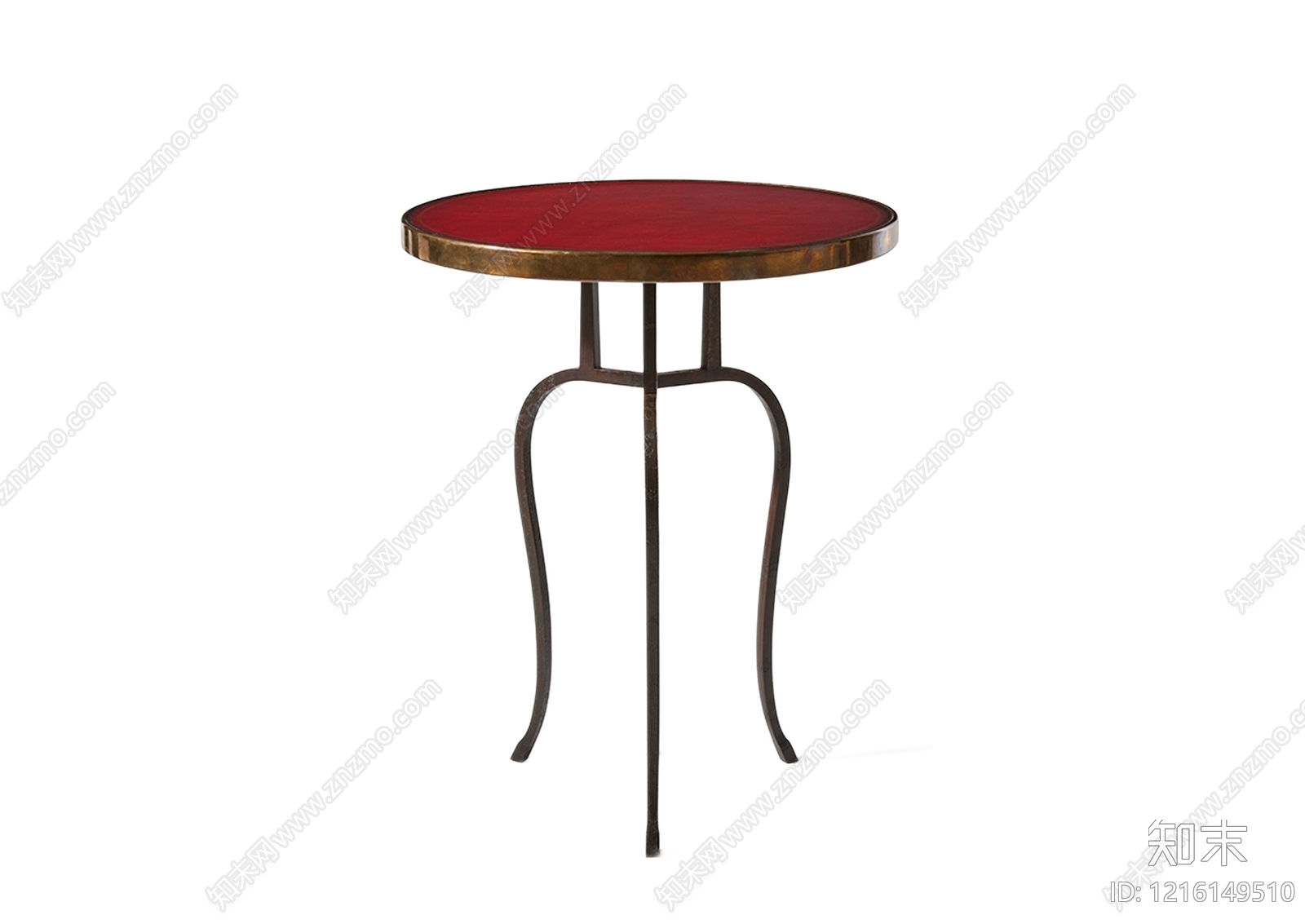 中古风边几 Joseph 三角金属边几 红色烤漆圆几 中古1930s