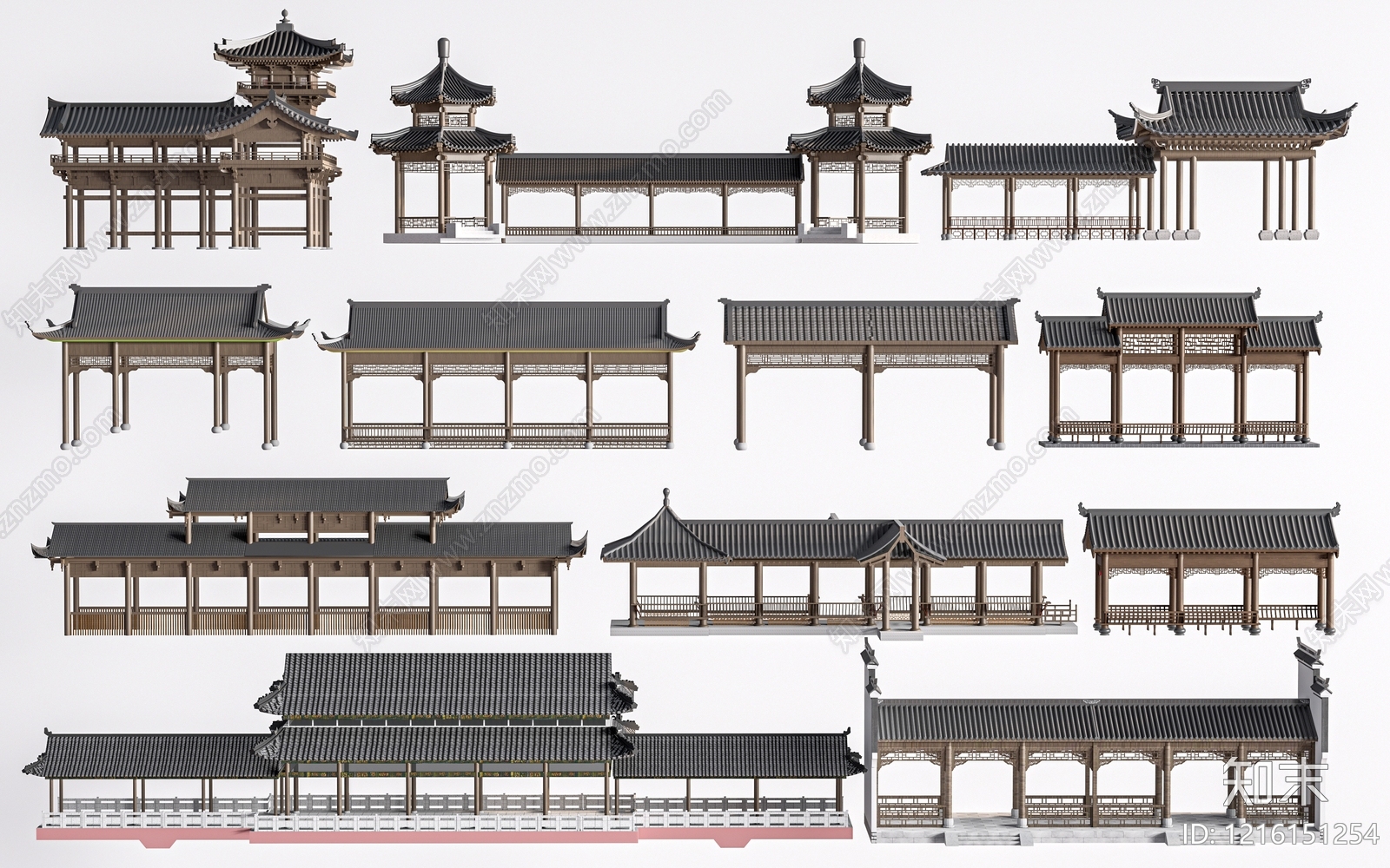 - 新中式亭子 中式长廊 中式连廊 中式廊桥 廊架 凉亭