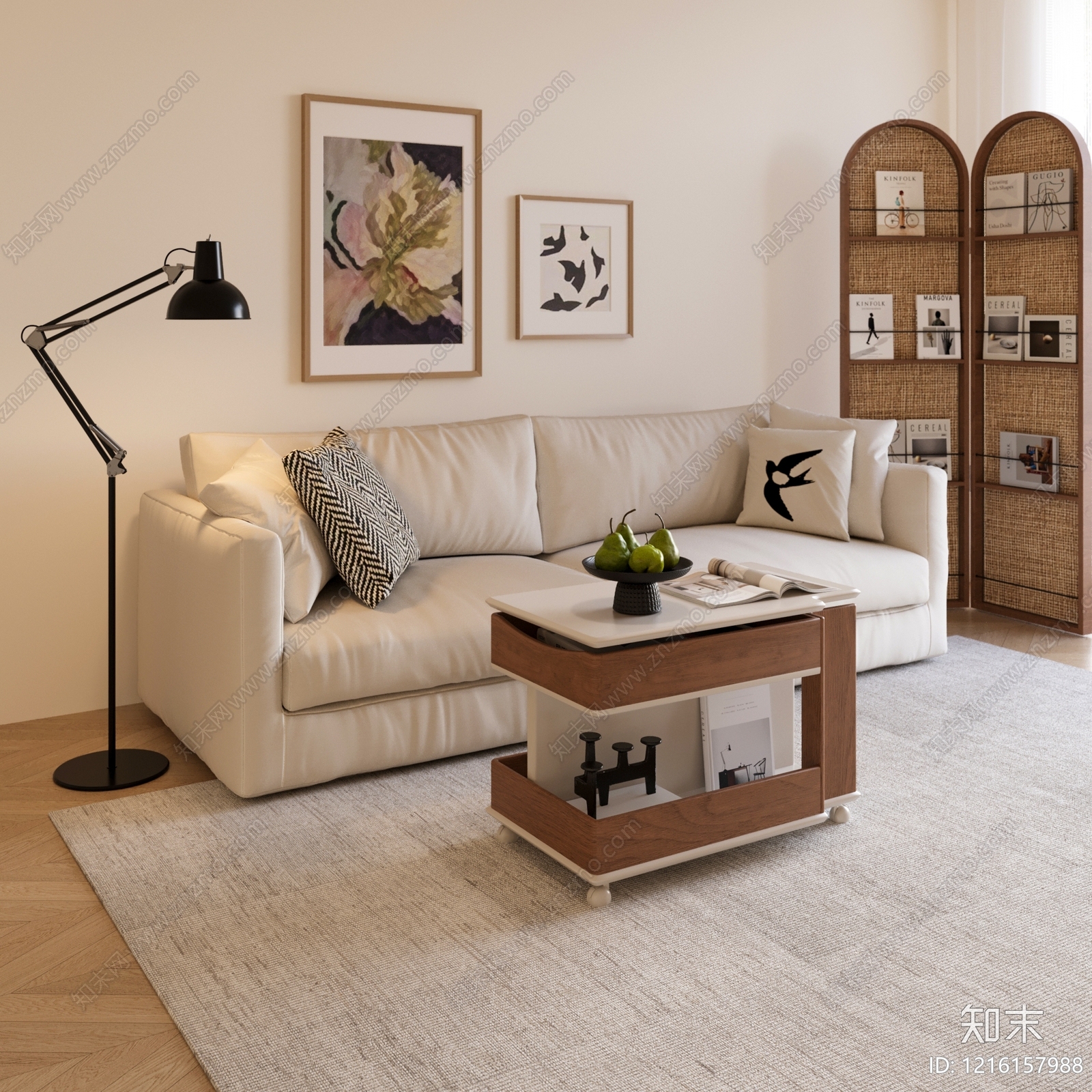 - 现代家居客厅 沙发茶几 屏风隔断 落地灯