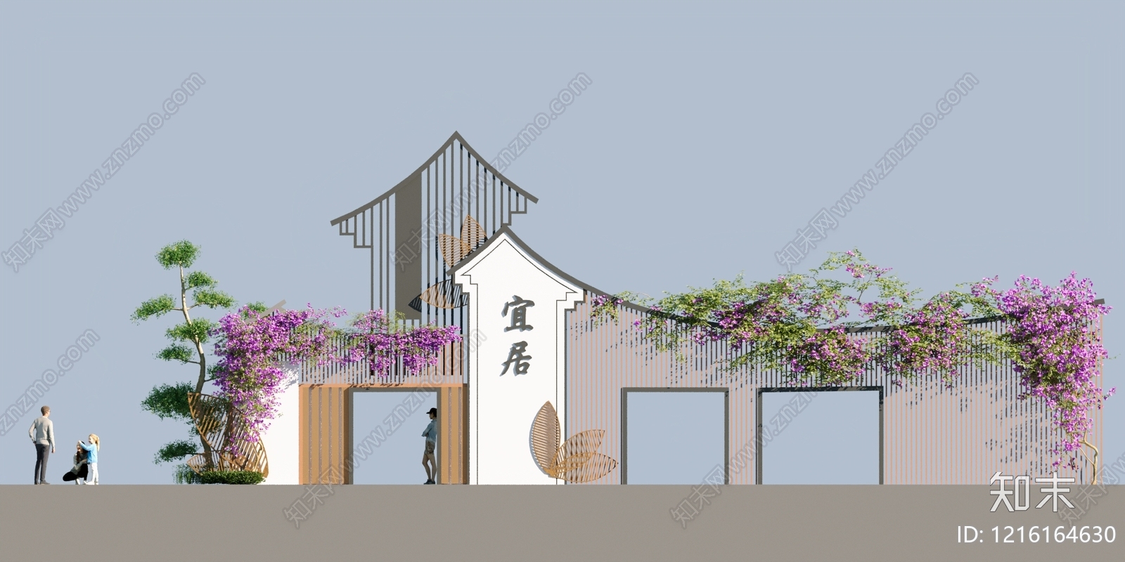 - 新中式入口大门 大门入口 门头 老旧改 城市更新 logo墙