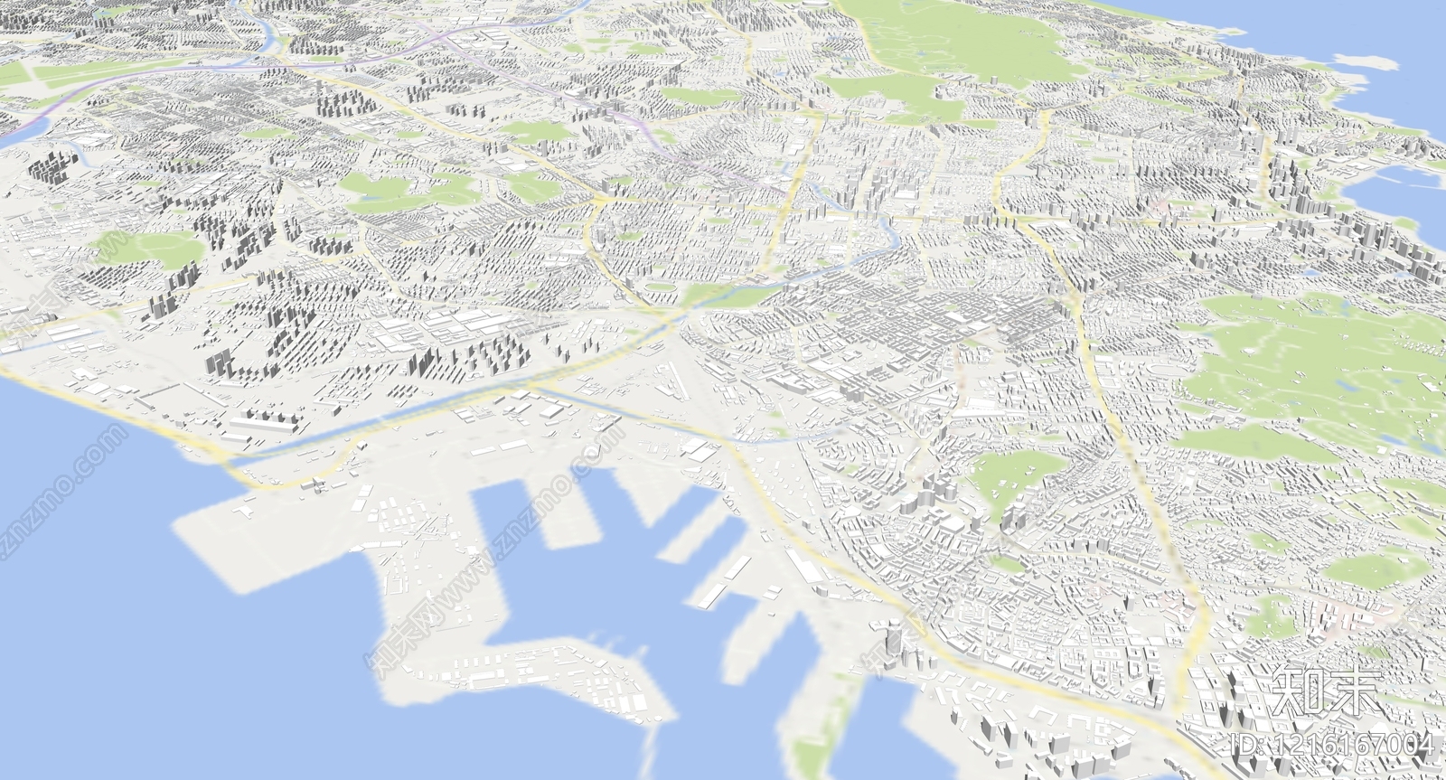 极简主义鸟瞰规划 青岛城市规划 青岛市城市体块 建筑白模体块 城市规划