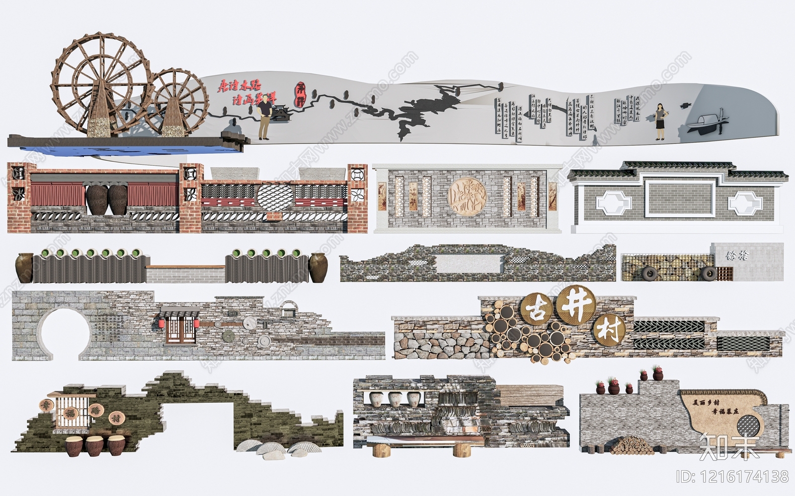 - 新中式乡村景观景墙 现代乡村景墙 民俗景墙 景墙围墙 乡村围墙