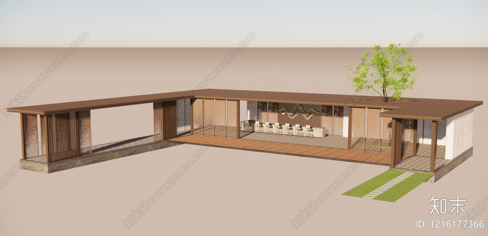- 新中式社区连廊 转角连廊景观构筑 现代东方连廊空间 镂空金属屏风连廊 示范区庭院连廊