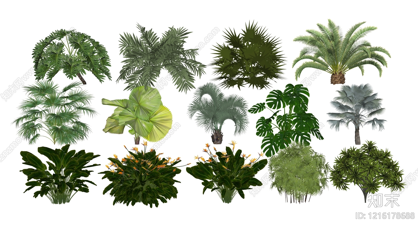 热带植物景观植物组合 3D热带灌木 3D灌木 热带灌木