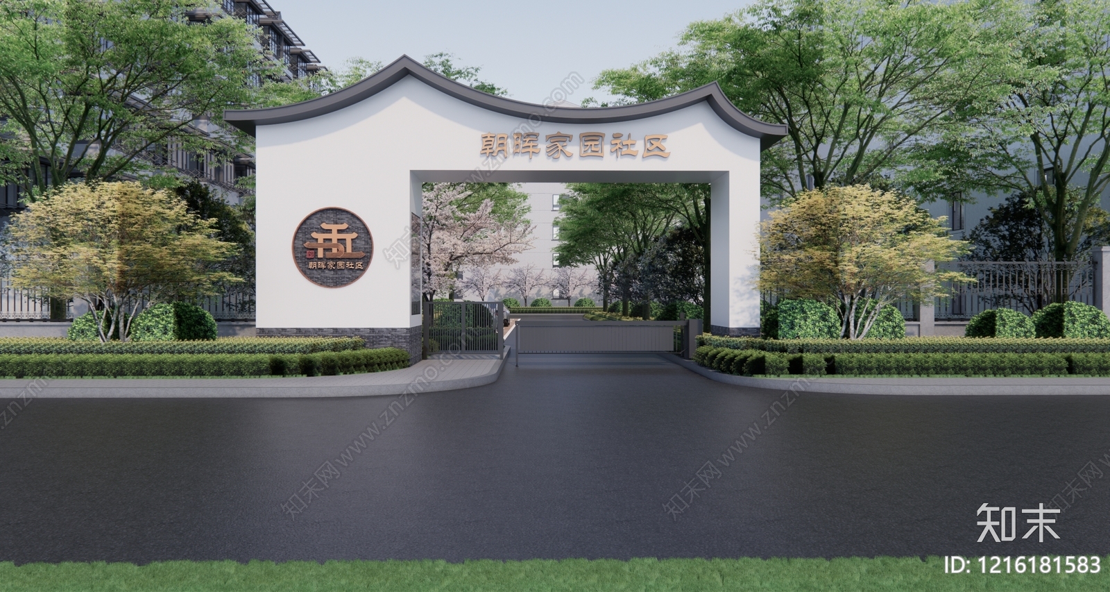 - 新中式入口大门 社区入口 大门改造 城市更新 老旧改门头 新中式大门