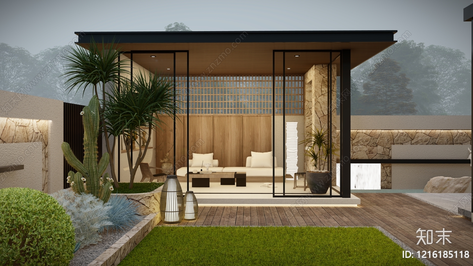 - 新中式景观别墅庭院 现代庭院 禅意庭院 自然风庭院 别墅 庭院景观