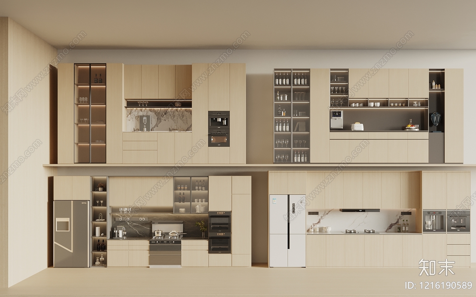 现代简约餐边柜 现代餐边柜 嵌入式烤箱 冰箱柜 橱柜厨具 集成灶